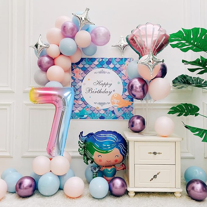 Smlpuame 40 Inch Number Balloons 0-9 Rainbow Gradient Large Number 7 Balloons, Digital Balloons for Birthday Party Celebration Decorations, Helium Foil Number Balloons for Wedding Anniversary