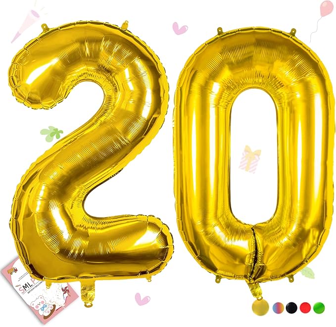 Smlpuame 40 inch Number Balloon 0-9 Gold Large Number 20 Balloons,Digital Balloons for Birthday Party Celebration Decorations Supplies, Helium Foil Number Balloons for Wedding Anniversary