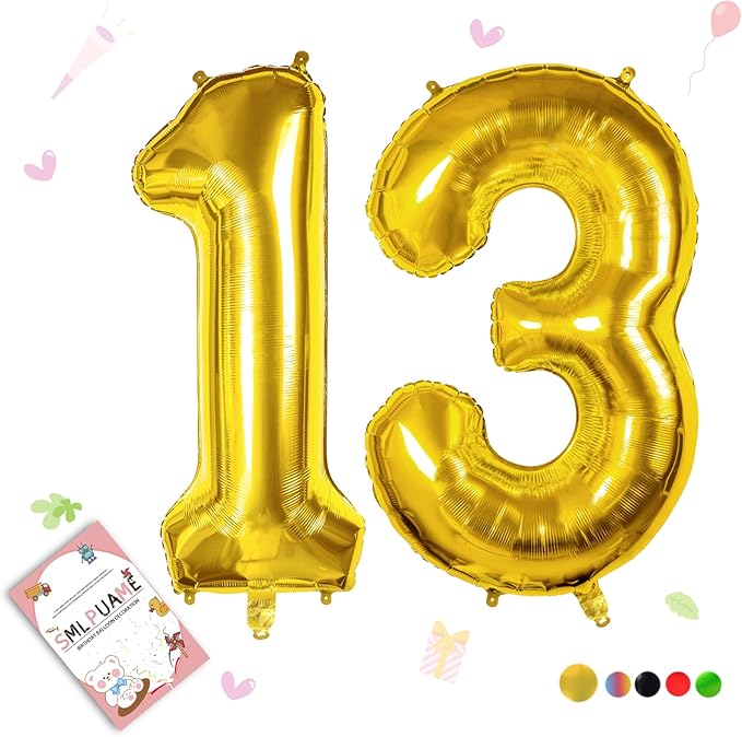 Smlpuame 40 inch Number Balloon 0-9 Gold Large Number 13 Balloons, Digital Balloons for Birthday Party Celebration Decorations Supplies, Helium Foil Number Balloons for Wedding Anniversary
