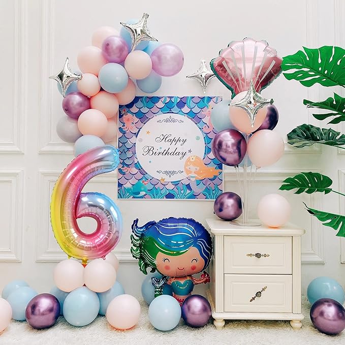 Smlpuame 40 Inch Number Balloons 0-9 Rainbow Gradient Large Number 6 Balloons, Digital Balloons for Birthday Party Celebration Decorations, Helium Foil Number Balloons for Wedding Anniversary