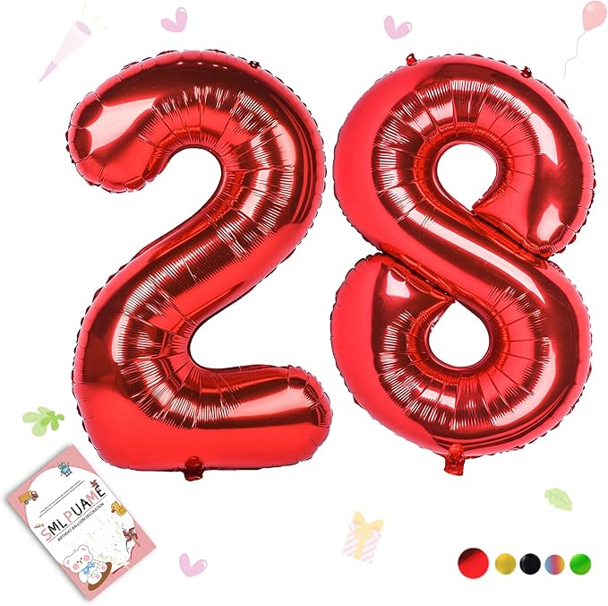 Smlpuame 40 inch Number Balloon 0-9 Red Large Number 28 Balloons,Digital Balloons for Birthday Party Celebration Decorations Supplies, Helium Foil Number Balloons for Wedding Anniversary