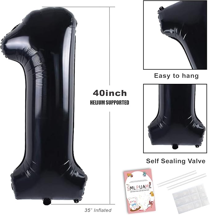 Smlpuame 40 inch Number Balloon 0-9 Black Large Number 3 Balloons,Digital Balloons for Birthday Party Celebration Decorations Supplies, Helium Foil Number Balloons for Wedding Anniversary