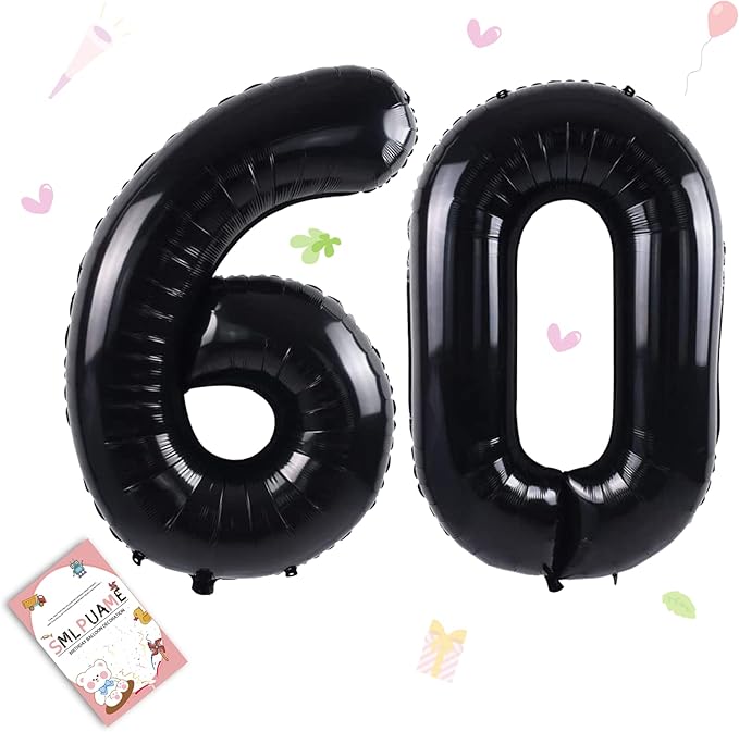 Smlpuame 40 inch Number Balloon 0-9 Black Large Number 60 Balloons,Digital Balloons for Birthday Party Celebration Decorations Supplies, Helium Foil Number Balloons for Wedding Anniversary