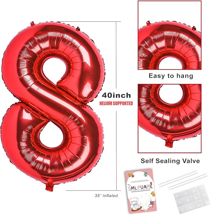 Smlpuame 40 inch Number Balloon 0-9 Red Large Number 8 Balloons,Digital Balloons for Birthday Party Celebration Decorations Supplies, Helium Foil Number Balloons for Wedding Anniversary