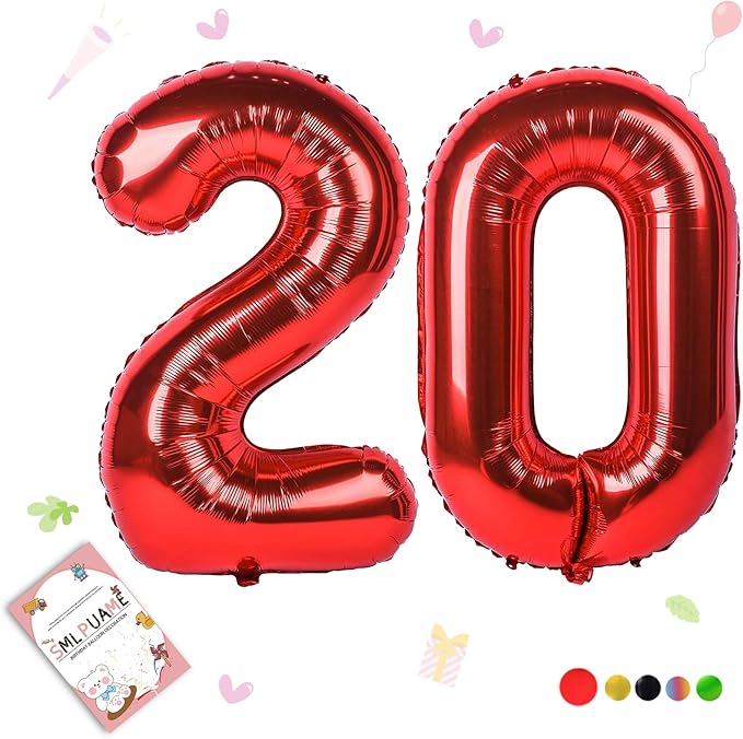 Smlpuame 40 inch Number Balloon 0-9 Red Large Number 20 Balloons,Digital Balloons for Birthday Party Celebration Decorations Supplies, Helium Foil Number Balloons for Wedding Anniversary