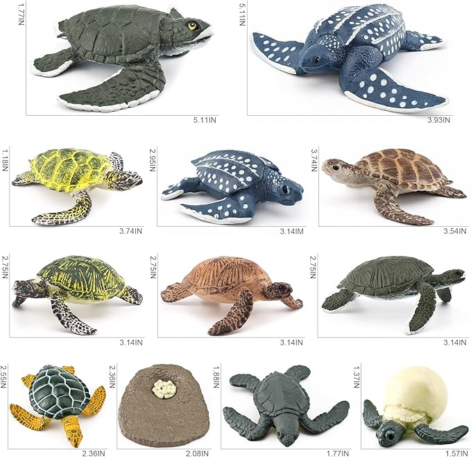 12PCS Sea Turtles Figurine Toys Set Realistic Large Leatherback Turtle Toy Plastic Turtle Modle Boy Birthday Gift for Kids