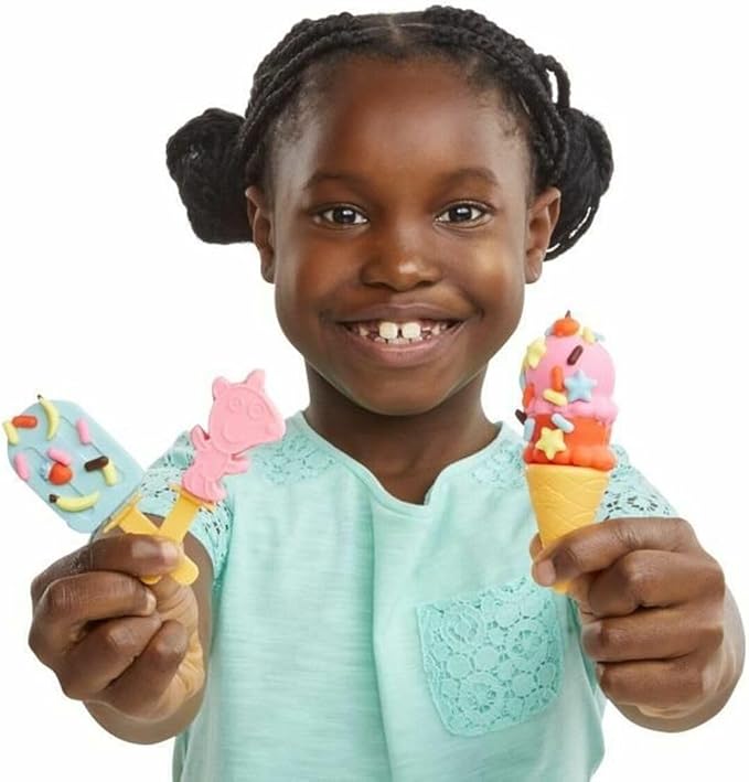 Play-Doh Peppa's Ice Cream Playset with Ice Cream Truck, Peppa and George Figures, and 5 Non-Toxic Modeling Compound Cans, Peppa Pig Toy for Kids 3 Years and Up