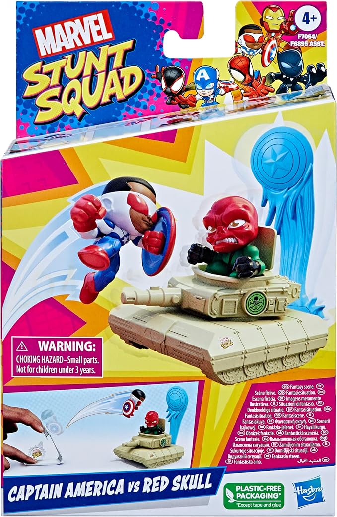 Marvel Stunt Squad Captain America vs. Red Skull Playset, 1.5-Inch Super Hero Action Figures, Toys for Kids Ages 4 and Up