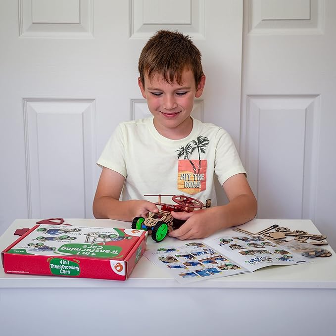 ButterflyEdufields 4in1 STEM Building Car Kits for Kids - DIY 3D Wooden Puzzle Toys, Educational STEM Gifts for Ages 6 to 12