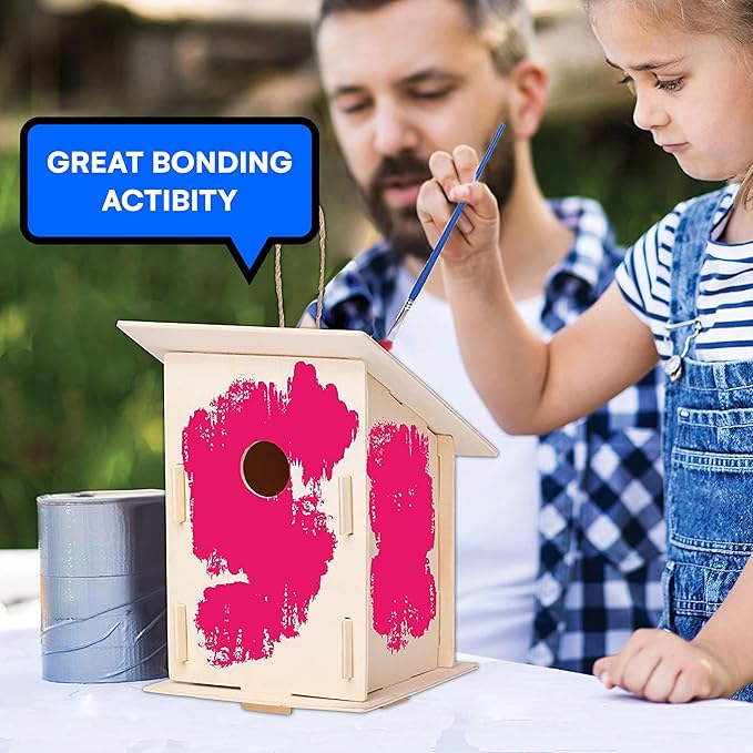 Neliblu 2 Pack Birdhouse Kits for Kids - 6.1" x 5.9" x 3.0" - DIY Craft and Garden Decoration, Pre-cut, Easy to Assemble for Birdwatchers - Includes Paints, Brushes, Birdhouse Kits for Adults to Build