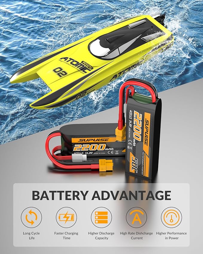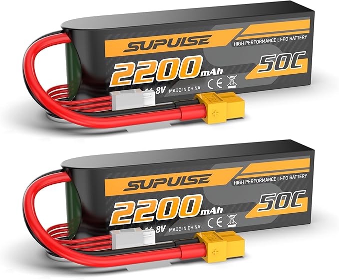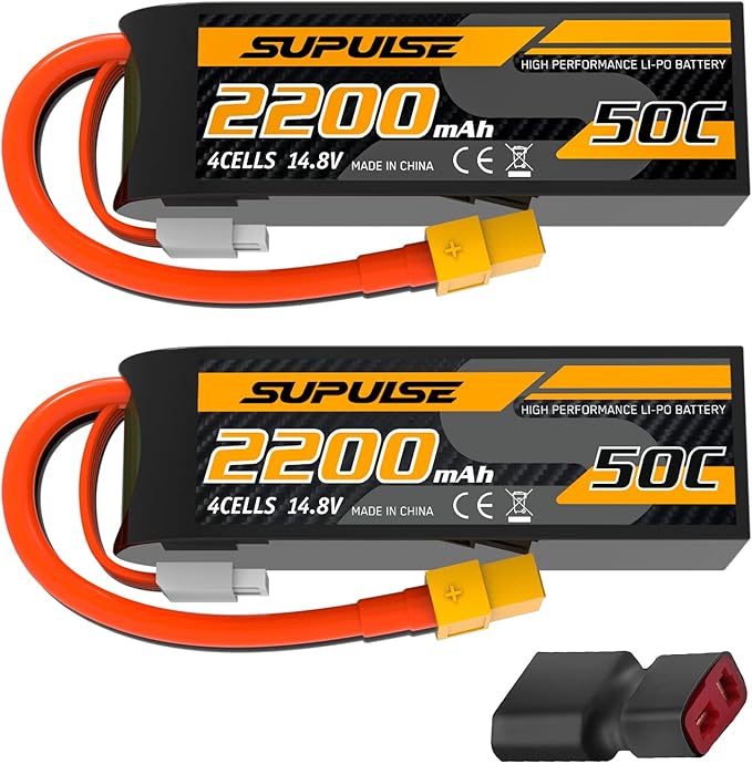 SUPULSE 4S Lipo Battery 14.8V 50C 2200mAh with XT60 Plug T Plug Soft Case Battery for RC Airplane Helicopter RC Boat RC Car Truck(2 Packs)