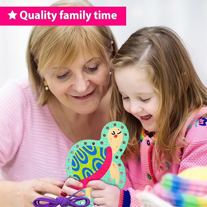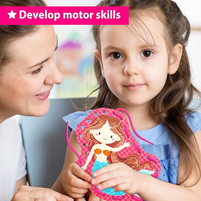 KRAFUN Beginner Mermaid Lacing Card Kit for Kids Arts & Crafts, 5 Easy Mermaid, Animal Lacing Projects, Paper Lace Cards for Toddlers, Fine Motor Preschool Skills Toys