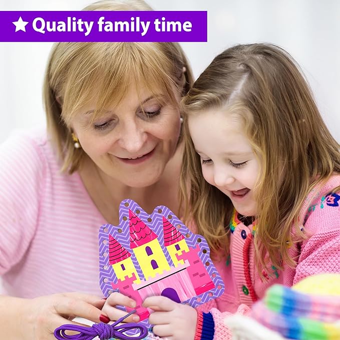 KRAFUN Beginner Unicorn My First Lacing Card Kit for Kids Arts & Crafts, 5 Easy Princess Lacing Projects, Paper Art Craft Cards for Toddlers, Fine Motor Preschool Skills Toys