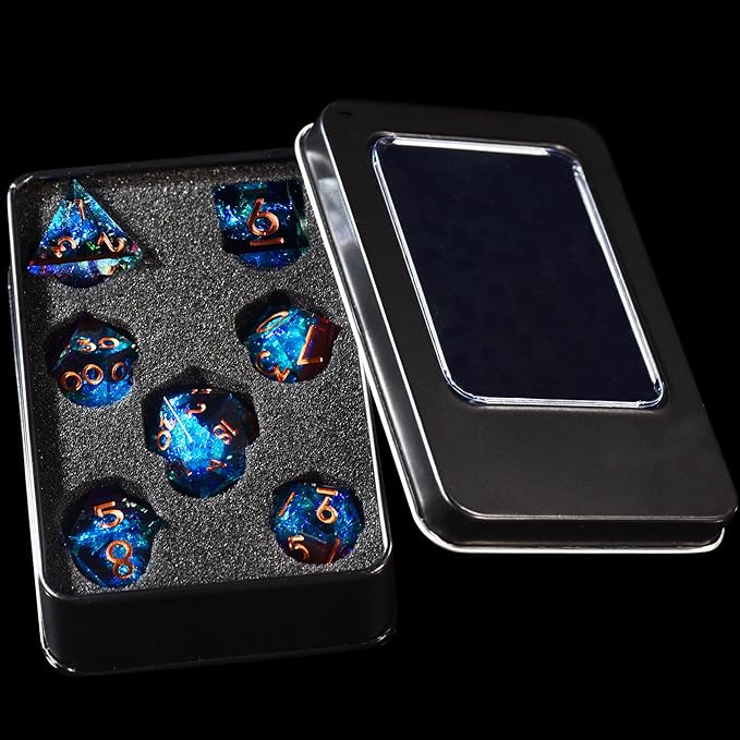 AUSTOR 7-Die DND Dice Set Handmade Sharp Edge Polyhedral Dice for Dungeons and Dragons RPG MTG Table Games(Flame Red & Ice Blue)