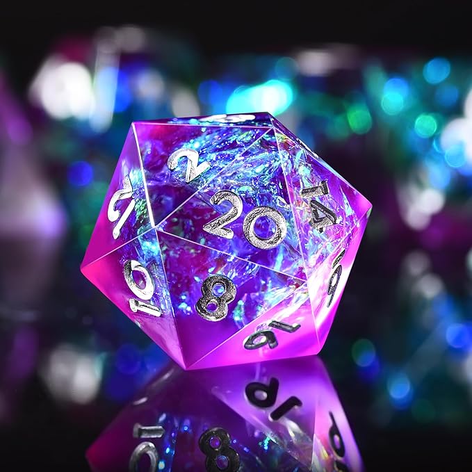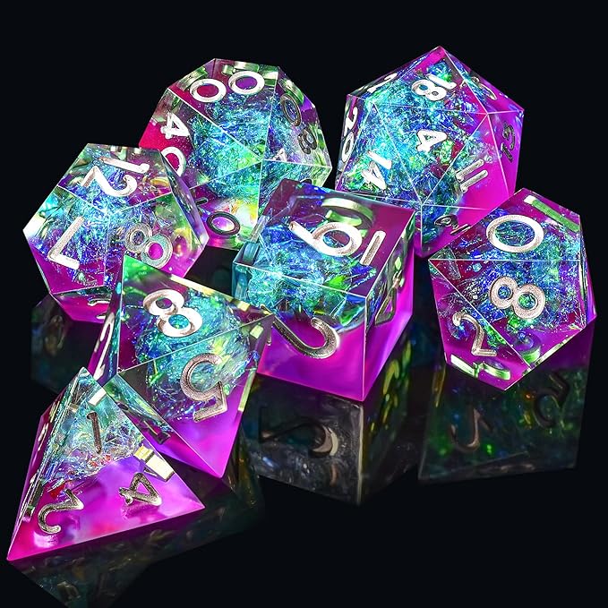 AUSTOR 7-Die DND Dice Set Handmade Sharp Edge Polyhedral Dice for Dungeons and Dragons RPG MTG Table Games(Violet & Blue)