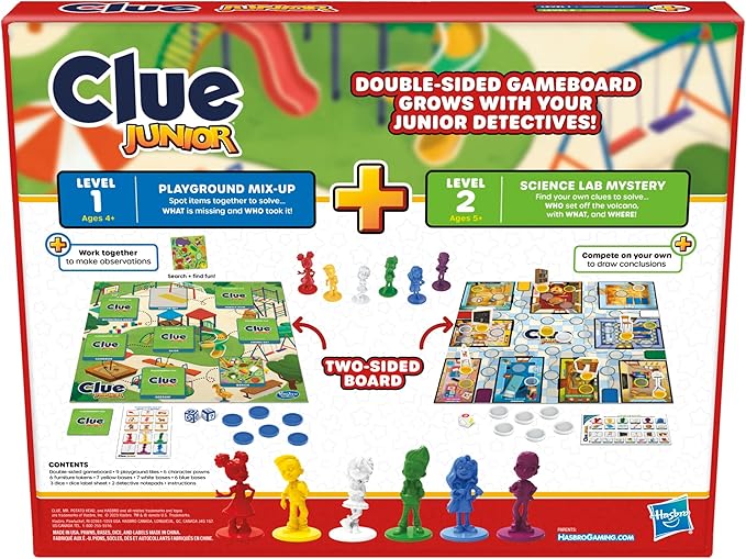 Clue Junior Board Game | 2-Sided Gameboard, 2 Games in 1 | 2 to 6 Players | Mystery Games for Kids | Back to School Gifts | Classroom Preschool Games | Ages 4+
