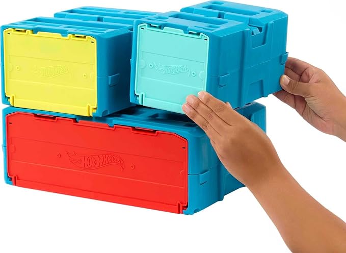 Hot Wheels Toy Car Track Set, Track Builder Playset Flame Stunt Pack with 16 Component Parts & 1:64 Scale Vehicle in Modular Storage Container