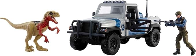 Mattel Jurassic World Search 'n Smash Truck Set with Atrociraptor Dinosaur & Human Action Figure, Vehicle with Destruct Features
