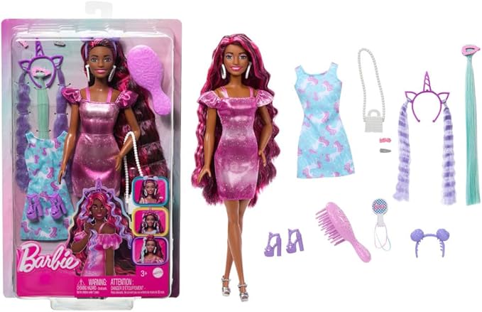 Barbie Fun & Fancy Doll & Accessories Set, Fashion Doll with Extra-Long Color-Streaked Blonde Hair, Clothes & Styling Pieces