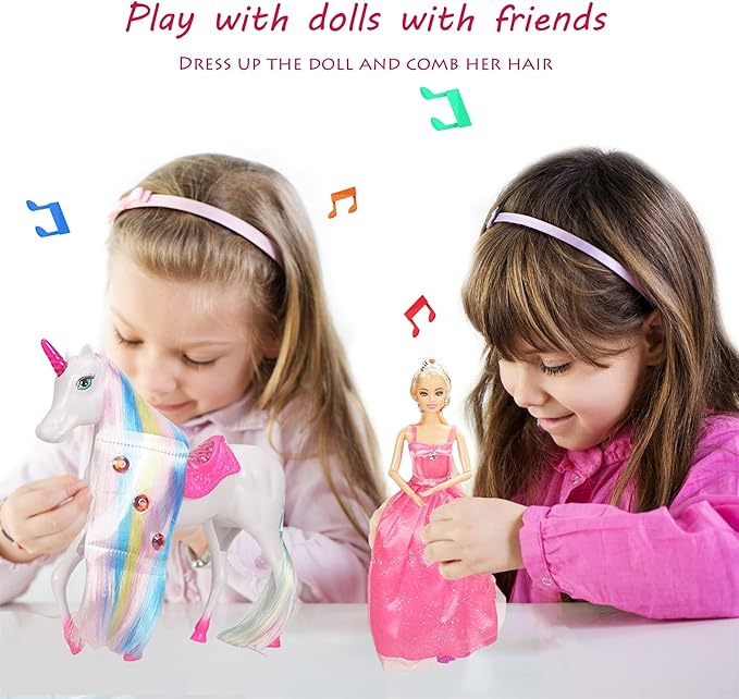 Yellow River Magical Light Unicon and 11.5" Princess Doll, Unicorn Gifts for Christmas Birthday for Girls 3+, Fairy Tale Story Unicorn Horse Toys Playset for Kids Ages 3 4 5 6 7 8