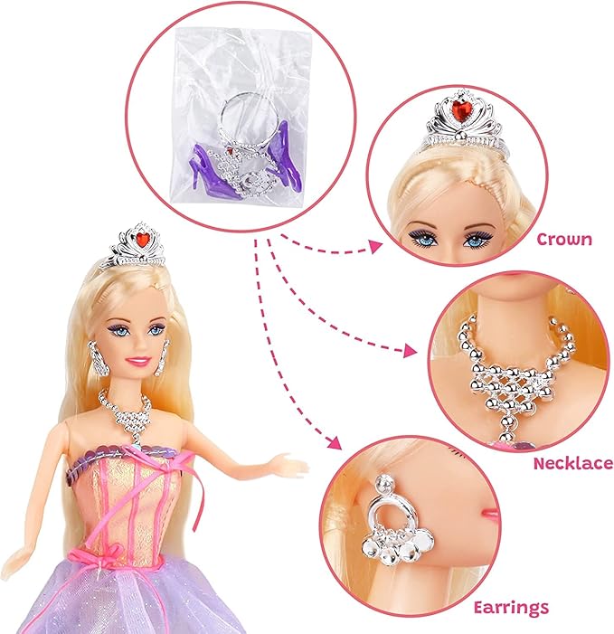 Yellow River Color Changing Unicorn & Princess Doll, Color Change on Whole Unicorn Under Sunshine, 12'' Doll and 11'' Unicorn Toys & Gifts with Removable Saddle & Wings for Girls