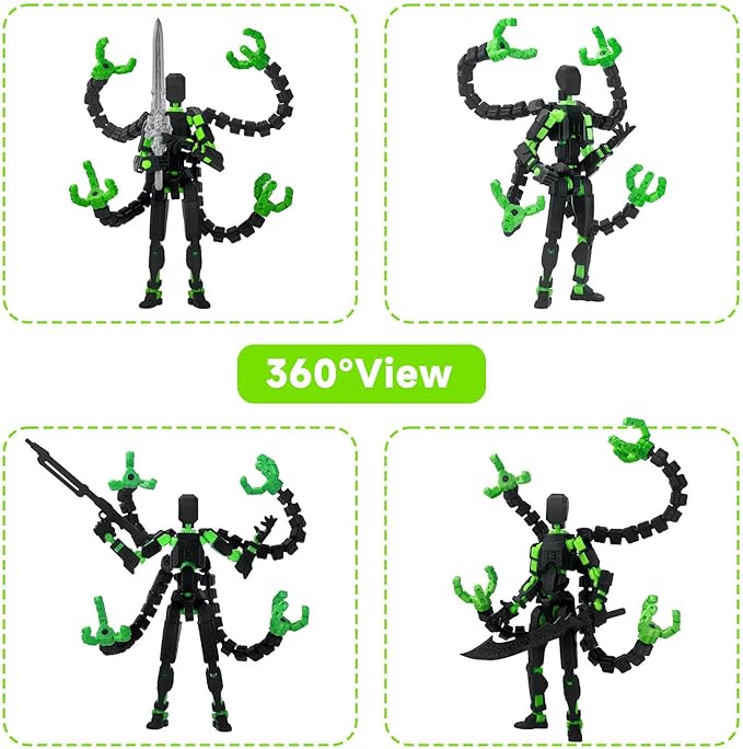 Already Assembled T13 Action Figure Accessories,Dummy 13 T13 Multi-Jointed Movable,for Collectors Desktop Decorations t-13 Movability 3D Printed Toys (Black Green)