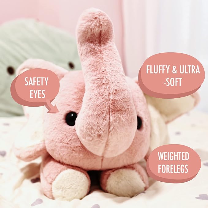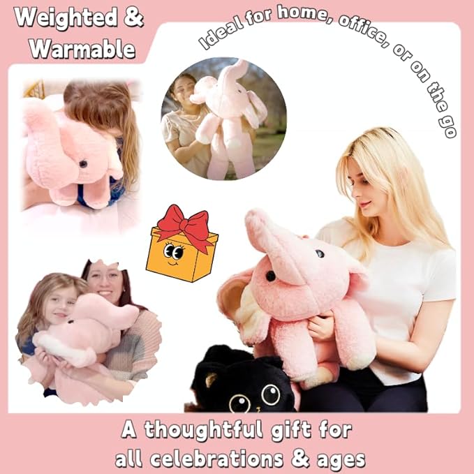 uoozii 24" | 5 Pounds Pink Elephant Weighted Stuffed Animals with Unscented Microwavable Heating Pad, Cute Coolable Heatable Weighted Plush Warm Gift for Kids & Adults