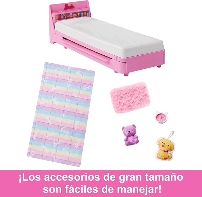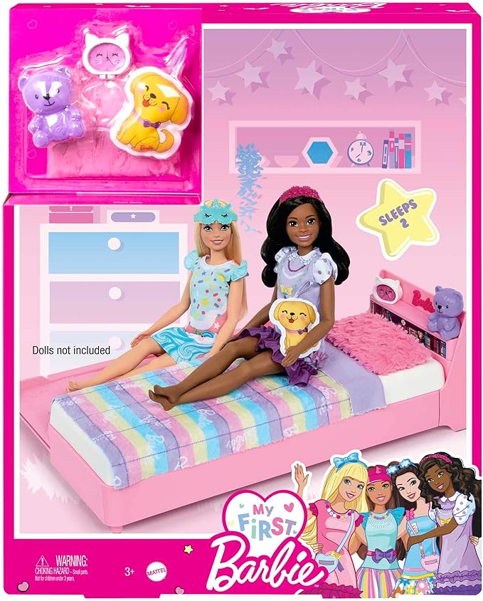 Barbie My First Barbie Doll House Furniture, Bedtime Playset with Trundle Bed, Plush Puppy & Accessories, Toys for Little Kids, 13.5-inch Scale