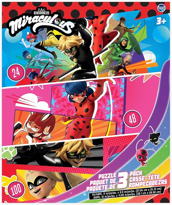 Miraculous Ladybug - 3 in 1 Jigsaw Puzzles for Kids. Featuring Lady & Cat Noir. Great Birthday & Educational Gifts for Boys and Girls. Colorful Pieces Fit Together Perfectly.