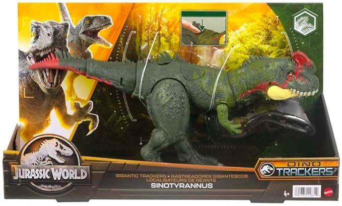 Mattel Jurassic World Gigantic Trackers Action Figure, Sinotyrannus Dinosaur Toy with Attack Motion & Tracking Gear