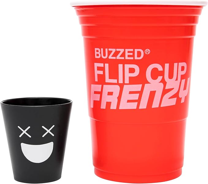 Buzzed Flip Cup Frenzy Adult Drinking Game, Party Games for Adults, Includes 1 Game Mat, 8 Flip Cups, 1 Drink Cup, and Instructions
