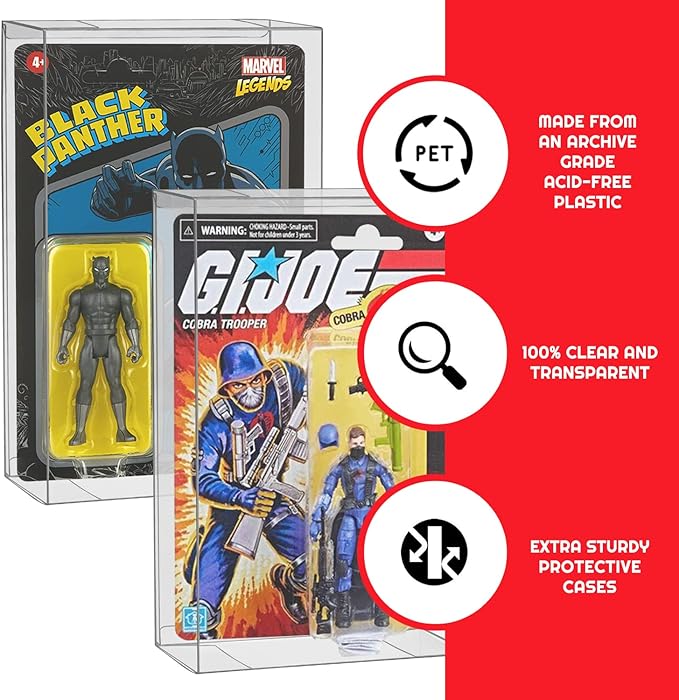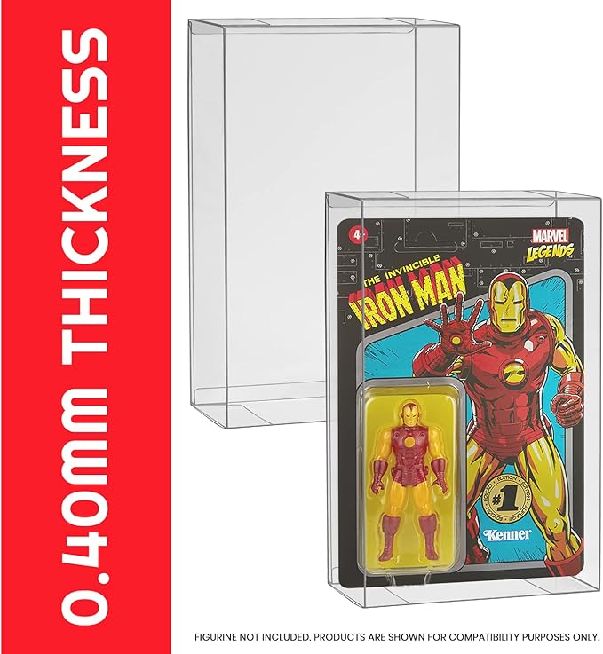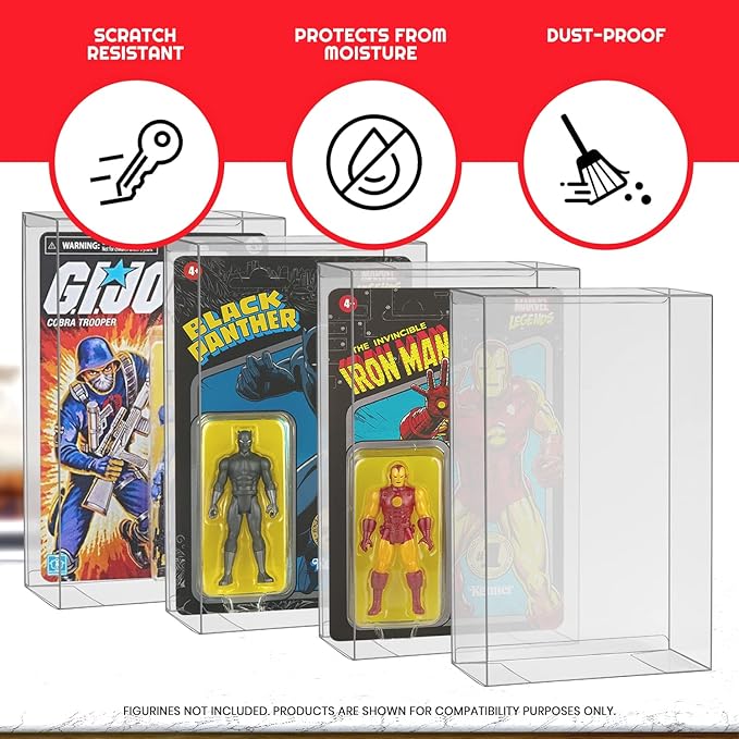 EVORETRO Action Figure Protective Display Case for 3.75 inches Star Wars, Marvel Legends & GI Joe Carded Toy Figurine - 10 Pack - Clear Thick PET Plastic Case Protector - Shallow, 30MM