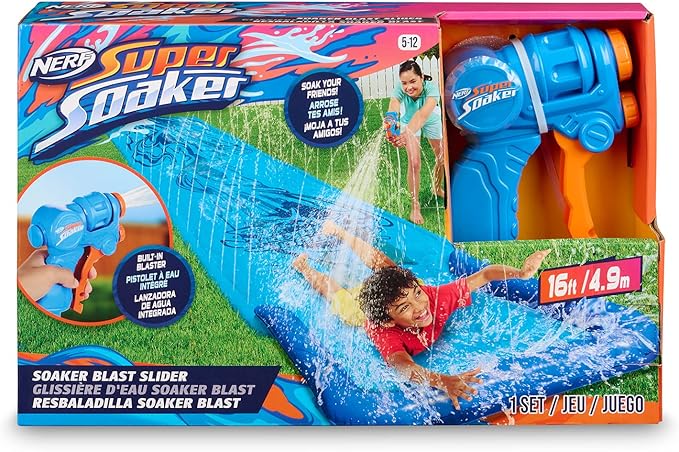 NERF Super Soaker Blast Water Slide – The Ultimate 16 Ft Outdoor Slide for Kids – Includes Extra Water Blaster