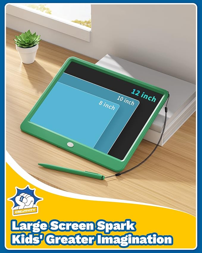 TEKFUN LCD Writing Tablet for Kids, 12inch Large Doodle Board Erasable Drawing Board, Zero Mess Coloring Travel Car Trip Toys for Toddler, Kids Birthday for Age 3-10 Boys & Girls