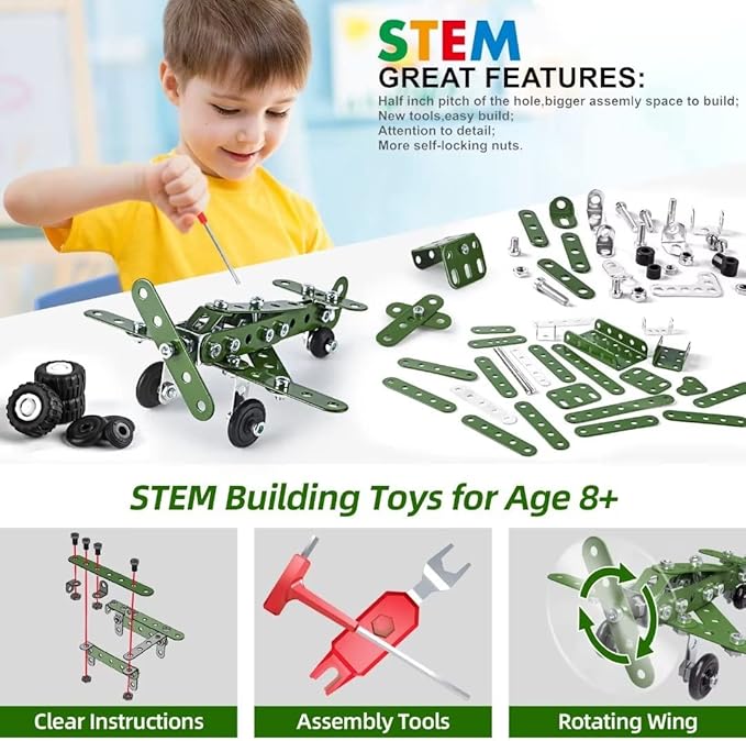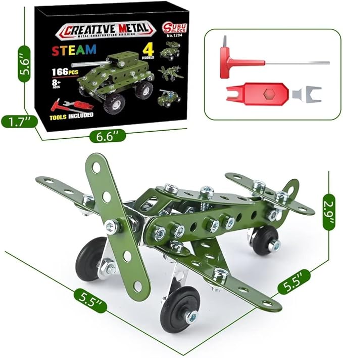 Metal Building Military Series Assembly Toys,Small Construction Set for Kids Ages 4-8, Military Toys for Boys Age 8-12,STEM Toy Gifts for Model Army Kit(166pcs No Motor)