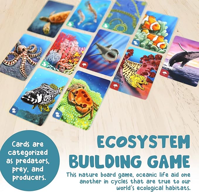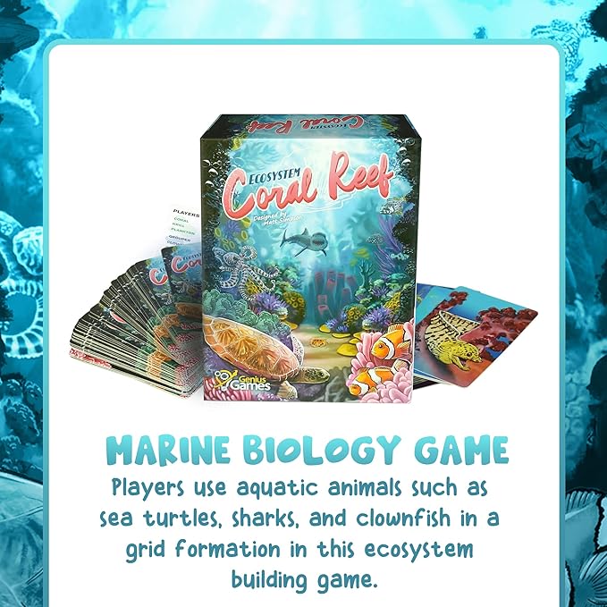 Genius Games Ecosystem: Coral Reef - A Mensa Recommended Family Card Game About Aquatic Animals, Their Habitats & Food Chain | A Light Educational Marine Biology Board Game for Kids and Families