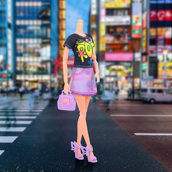 17 Pcs Doll Clothes and Accessories Suitcase Travel Set - Miniature Laptop Computer Tablet Phone, Suitcase,Backpack Bag,Clothes Set,Shoes,Telescope,Dollars,Omelette Toast Set for 11.5" Doll