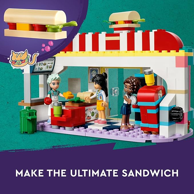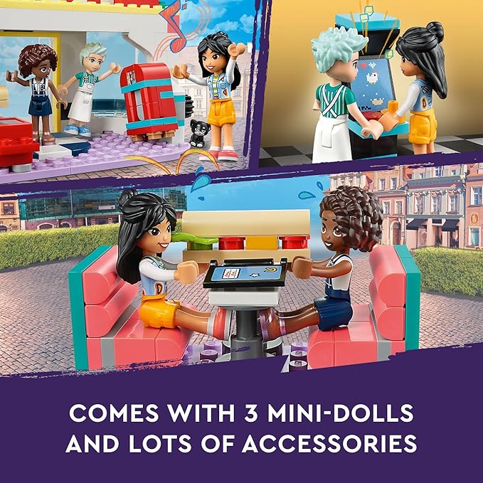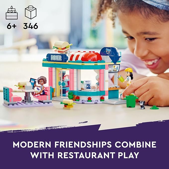 LEGO Friends Heartlake Downtown Diner Building Toy - Restaurant Pretend Playset with Food, Includes Mini-Dolls Liann, Aliya, and Charli, Birthday Gift Toy Set for Boys and Girls Ages 6+, 41728