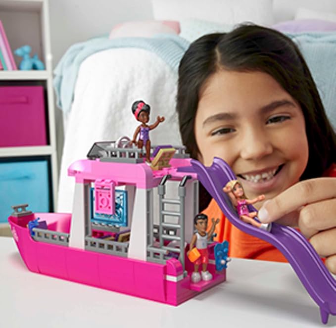 MEGA Barbie Kids Building Toy Set, Malibu Dream Boat with 317 Pieces, 2 Micro-Dolls and Accessories, Pink, Ages 6+ Years