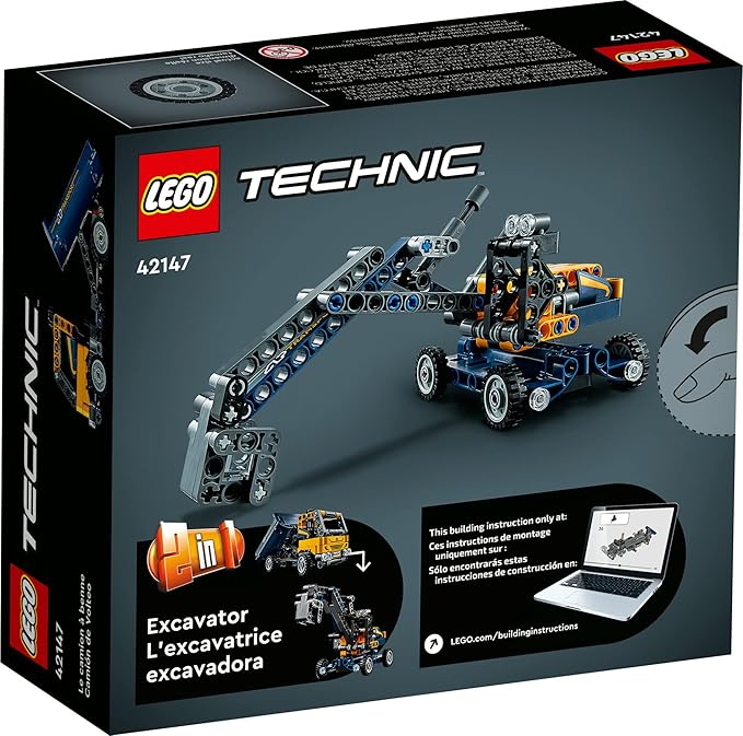 LEGO Technic Dump Truck 42147, 2in1 Toy Set, Construction Vehicle Model to Excavator Digger, Engineering Toys, Gift for Kids, Boys, Girls Ages 7 Plus