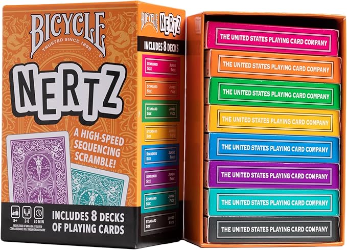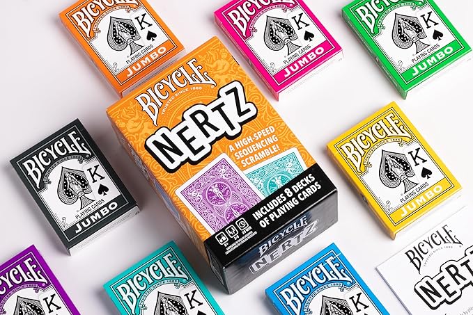 Bicycle Nertz Card Game (Solitaire) , 8 Decks of Jumbo Index Playing Cards, Fast-Paced Multiplayer Family Card Game for Kids and Adults, Classic Bicycle Cards, Up to 8 Players
