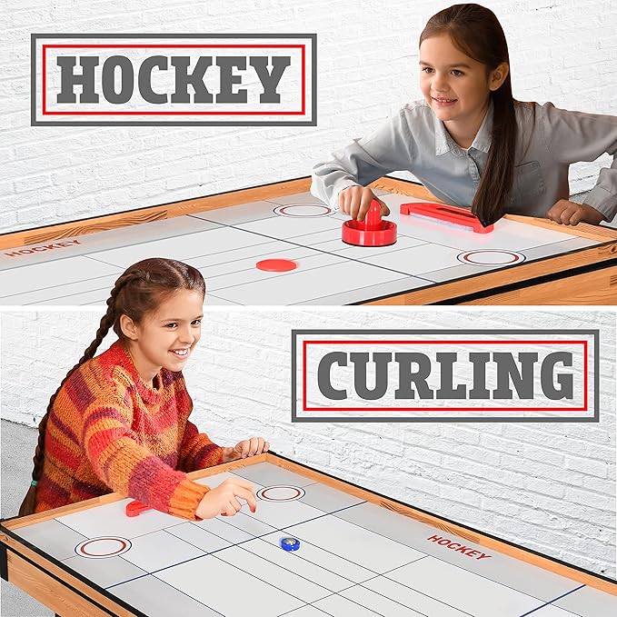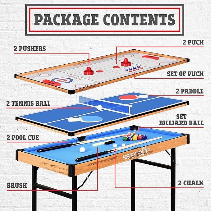 SereneLife 4 in 1 Multi Game Table, 4’x2’ Folding Portable Sports Arcade Games with Accessories, Ping Pong, Air Hockey, Pool Billiards, and Shuffleboard, for Indoor, Outdoor, All Ages