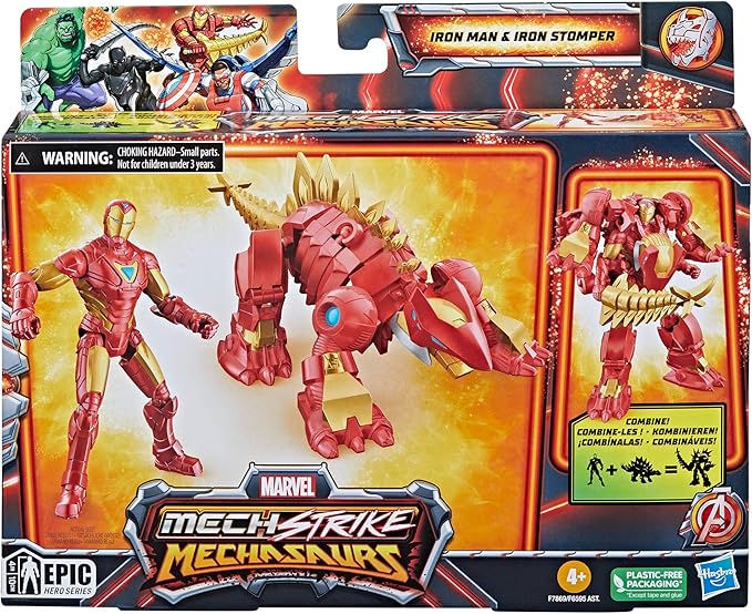Marvel Mech Strike Mechasaurs, 4-Inch Iron Man with Iron Stomper Mechasaur Action Figures, Super Hero Toys for Kids Ages 4 and Up