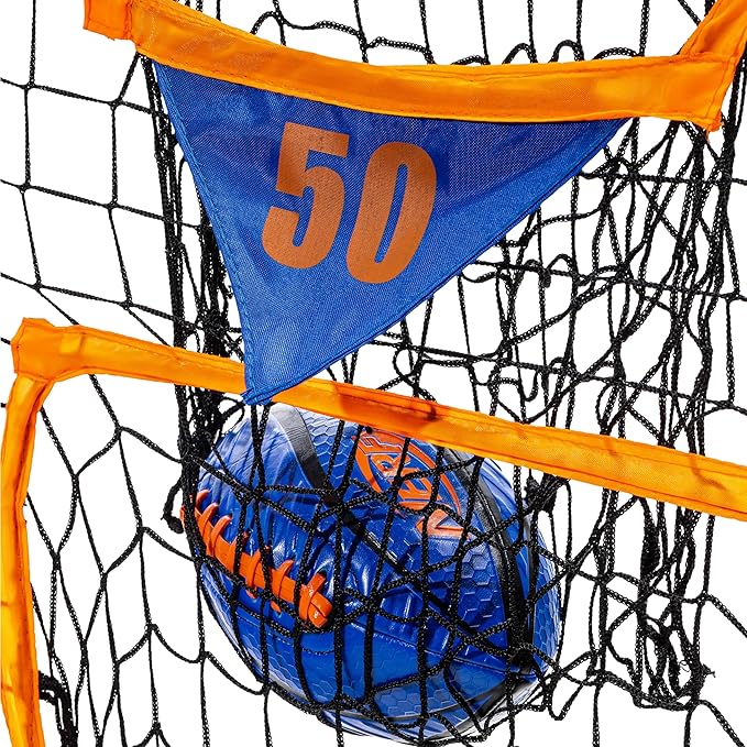 NERF Pro Pass Football Target Toss Net - Kids Football Passing Game Set - 5' x 2' Target Net with Ground Stakes + (1) Junior 8.5" Inch Ball Included - Indoor + Outdoor Youth Game