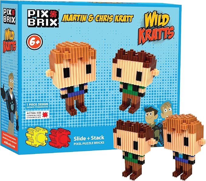 Pix Brix - Wild Kratts Toy Pixel Art Kit - Kratt Brothers Figures, 329 Pieces - Patented Slide + Stack Pixel Puzzle Building Bricks, Create Martin & Chris Figures - Stem Toys, Ages 6 Plus