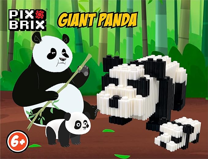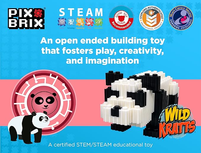 Pix Brix - Wild Kratts Toy Pixel Art Kit - Giant Panda, 543 Pieces - Patented Slide + Stack Pixel Puzzle Building Bricks, Build & Collect Wild Kratts Animals - Stem Toys, Ages 6 Plus