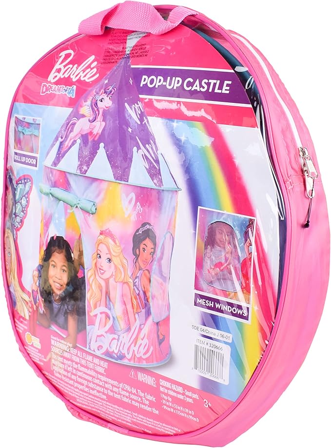 Barbie Pop Up Castle - Dreamtopia Pink Princess Play Tent for Kids | Folds Into Carrying Case - Sunny Days Entertainment
