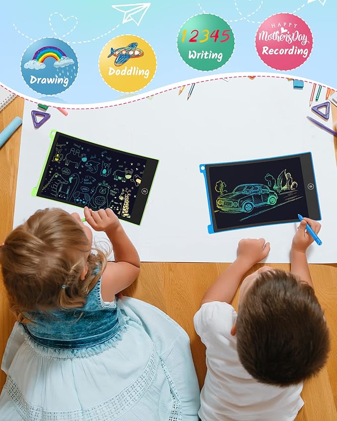 TECJOE LCD Writing Tablet, 8.5 Inch 2 Pack Colorful Doodle Board Drawing Tablet for Kids, Kids Travel Games Activity Learning Toys Birthday Gifts for 3 4 5 6 Year Old Boys and Girls, Blue Green