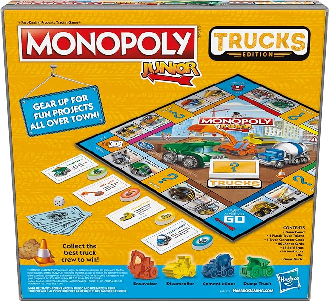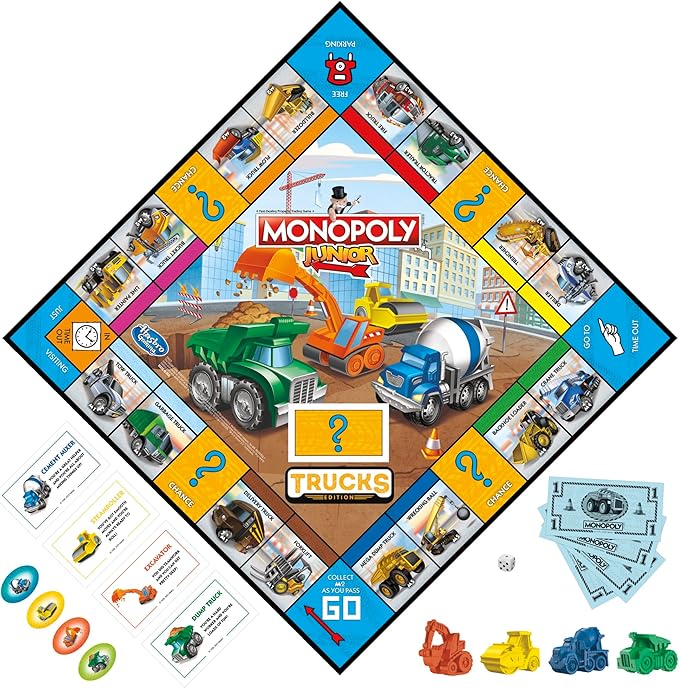 Monopoly Junior Trucks Edition Board Game for Kids Ages 5+, 2-4 Player Kids Games (Amazon Exclusive)