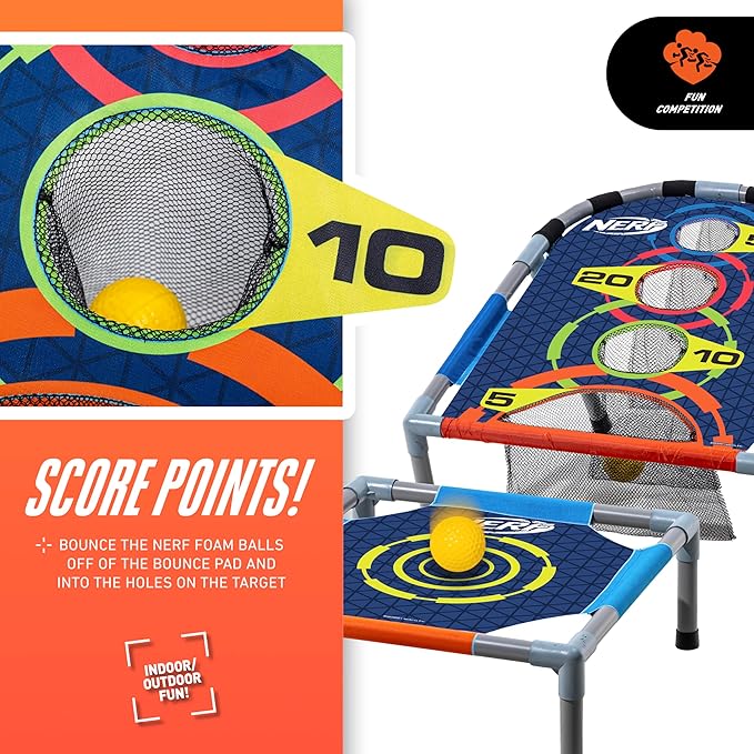 NERF Kids Bounce N Score Target Toss Game Set - Foam Ball Bouncing Game for Kids Ages 6+ - (6) Foam Bouncy Balls and (1) Scoring Target Included
